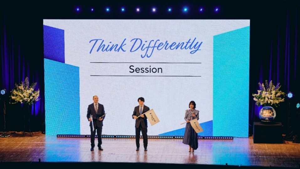 Ông Tetsuya Kikuta - Tổng Giám đốc Tập đoàn Daiichi Life (giữa) khuyến khích nhân viên hãy “Suy nghĩ khác biệt” trên hành trình đổi mới tại Lễ Công bố Thương hiệu của Tập đoàn vào ngày 1/4/2026.